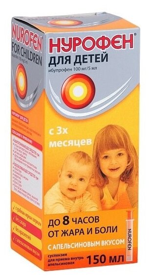 Нурофен для детей, суспензия 100 мг/5 мл (апельсин), 150 мл