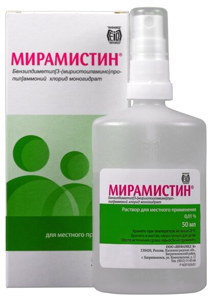 Ниже Вы можете прочитать отзывы на Мирамистин р-р д/мест. прим. фл. с распыл., 0.01%, 50 мл, ознакомится с подробными характеристиками, посмотреть интересные обзоры и фотографии на Мирамистин р-р д/мест. прим. фл. с распыл., 0.01%, 50 мл.