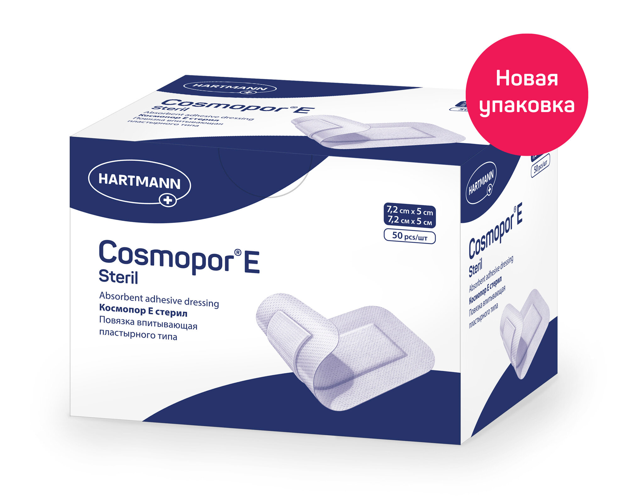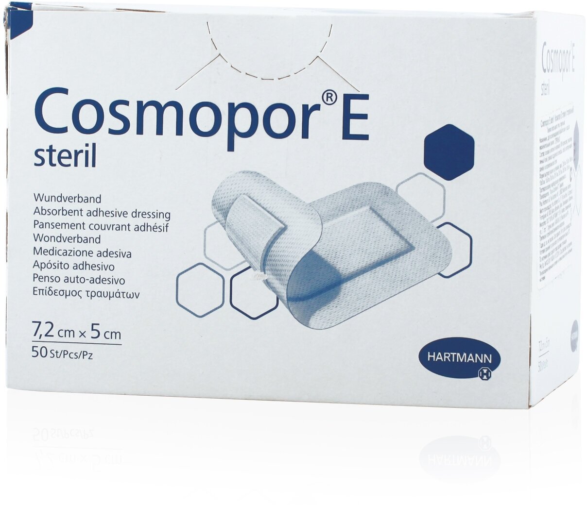 Пластырная повязка на рану COSMOPOR E steril (Космопор Е) для стерильного ухода при повреждениях кожи и послеоперационными ранами: 7,2 х 5 см; 50 шт.