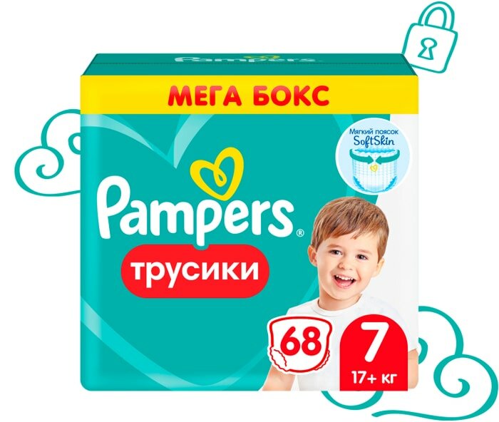 Подгузники-трусики для малышей Pampers от 17 кг, 7 размер, 68 шт (81773345)