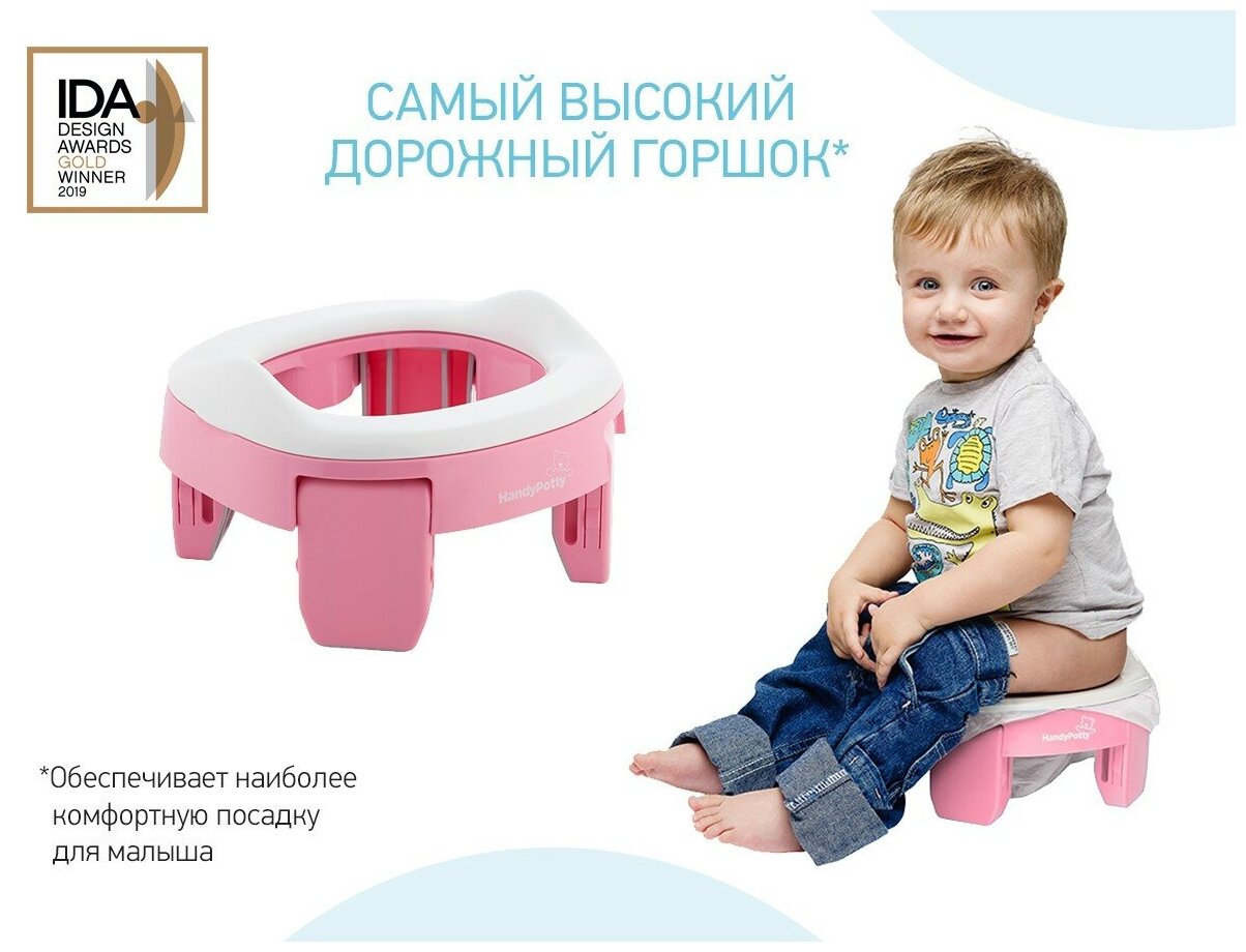Горшок дорожный складной с многоразовой вкладкой HandyPotty 3 в 1 от ROXY-KIDS, цвет розовый