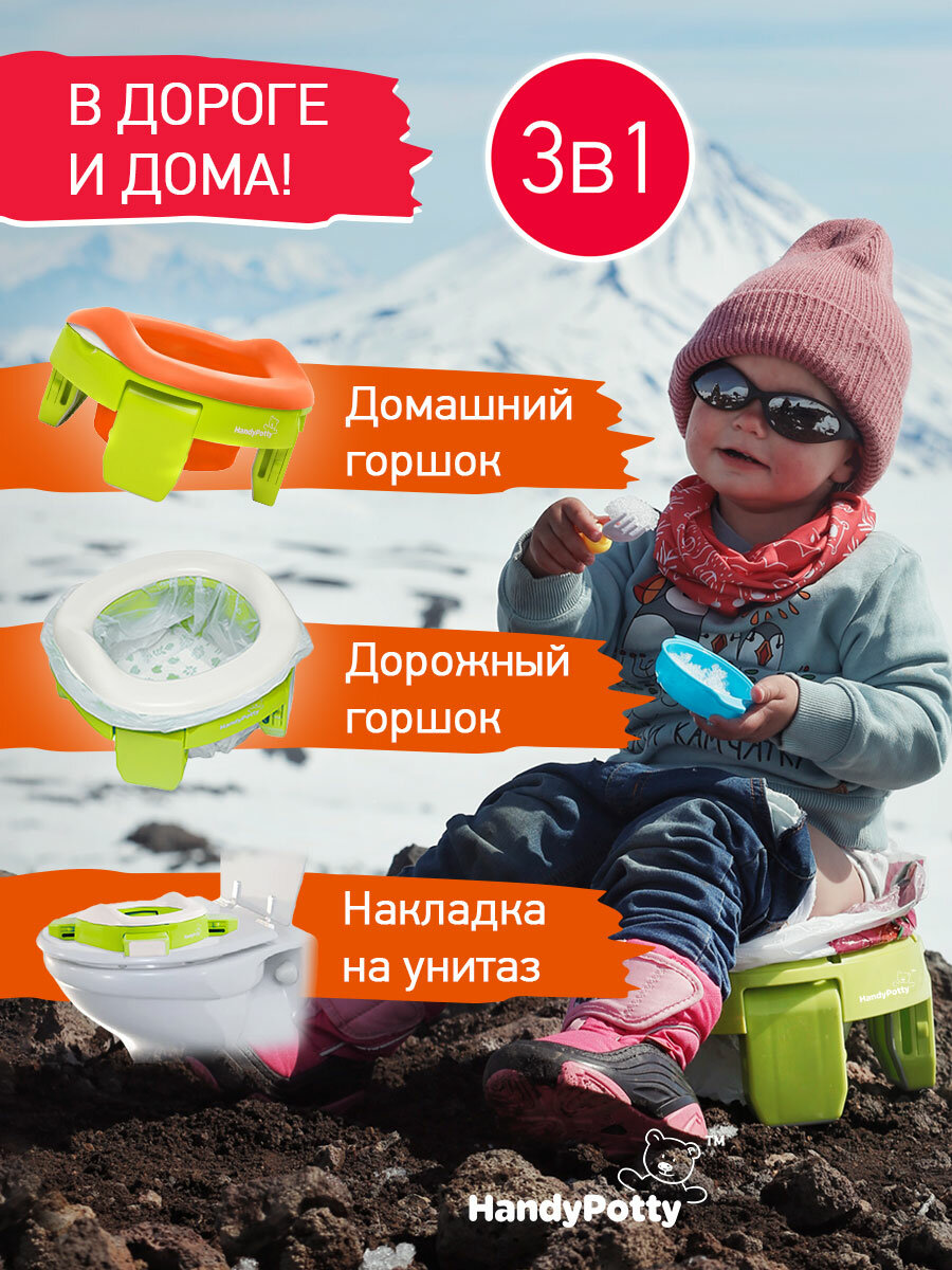 СохранитьГоршок дорожный складной с многоразовой вкладкой HandyPotty 3 в 1 от ROXY-KIDS, цвет лайм интересное: