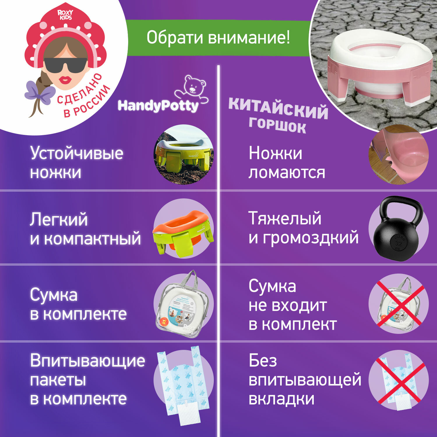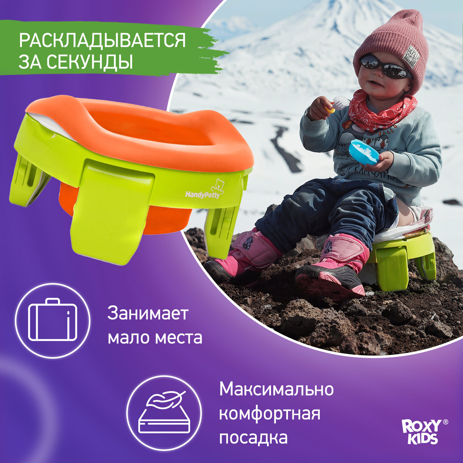 Горшок детский складной дорожный 3в1 для малышей HandyPotty ROXY-KIDS
