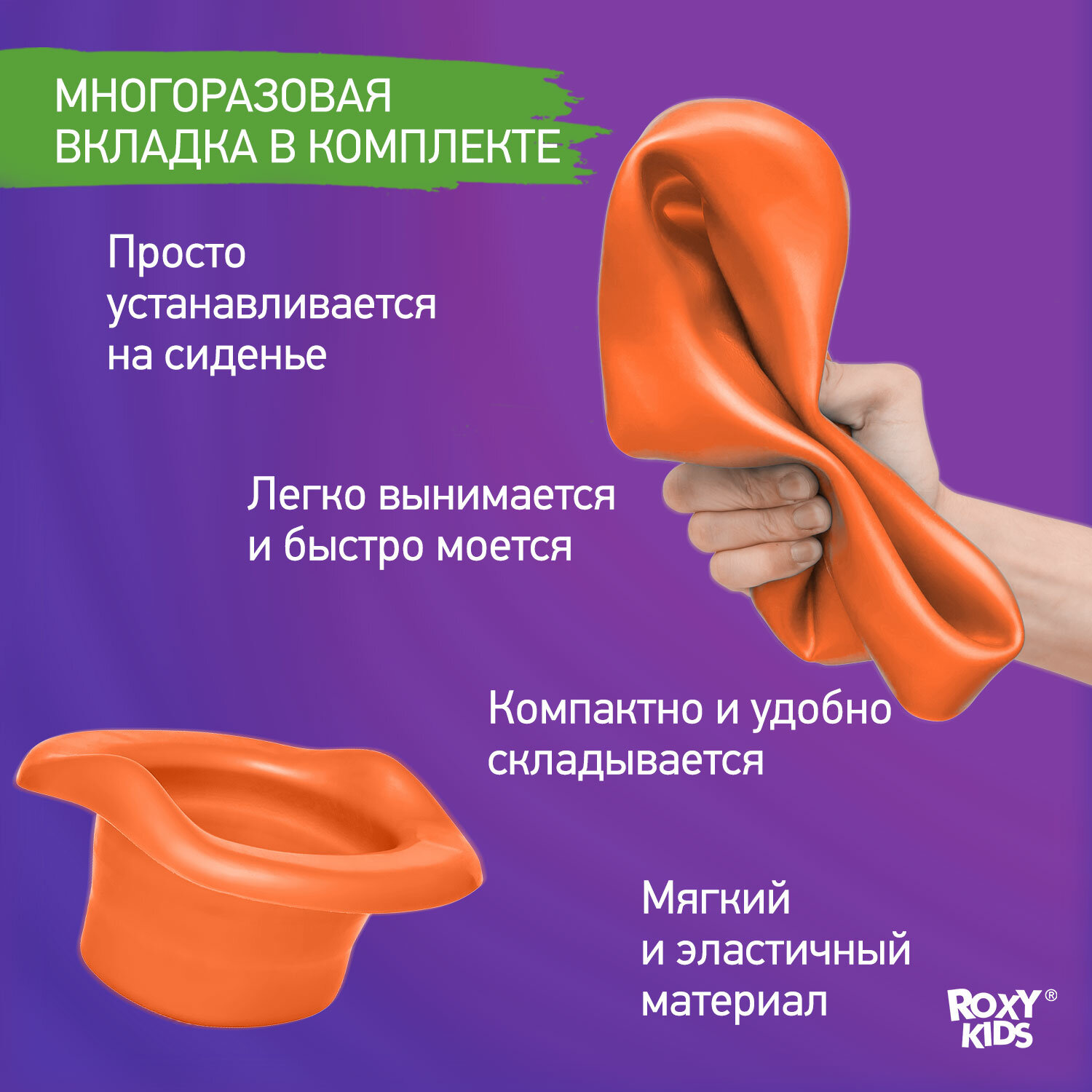 Горшок детский дорожный Roxy Kids дорожный, накладка на унитаз, складной, HandyPotty, цвет лайм и универсальная вкладка для горшка оранжевая (HP-255C)