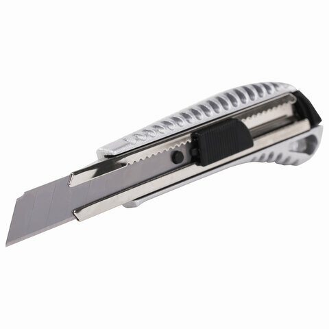 Нож канцелярский 18мм Brauberg Metallic, автофиксатор, металл, блистер (235401)
