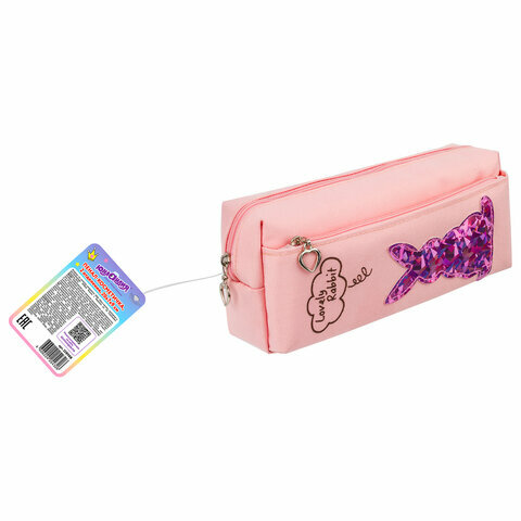 Пенал мягкий Юнландия, 2 отделения, полиэстер, Bunnies, розовый, 21х9х6 см, 272346