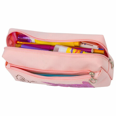 Пенал-косметичка Юнландия 2 отделения, полиэстер, Heart, розовый, 21х6х9 см (270258)