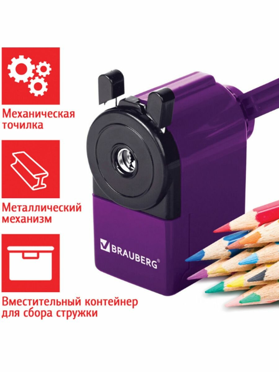 Точилка механическая BRAUBERG "JET", металлический механизм, корпус фиолетовый, 229569 В комплекте: 1шт.