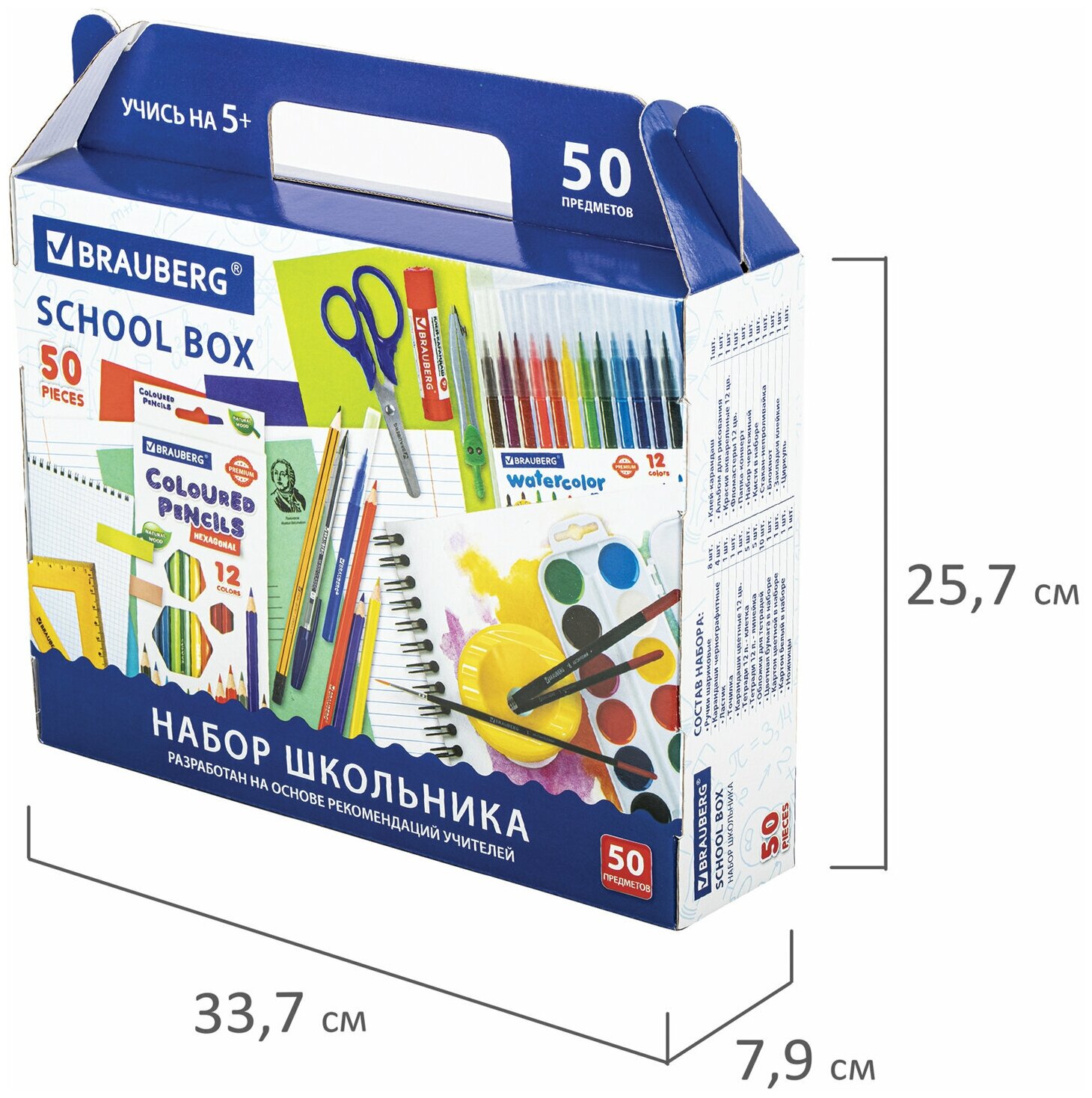 Купить Набор школьных принадлежностей в подарочной коробке BRAUBERG "школьный универсальный", 50 предметов, 880123