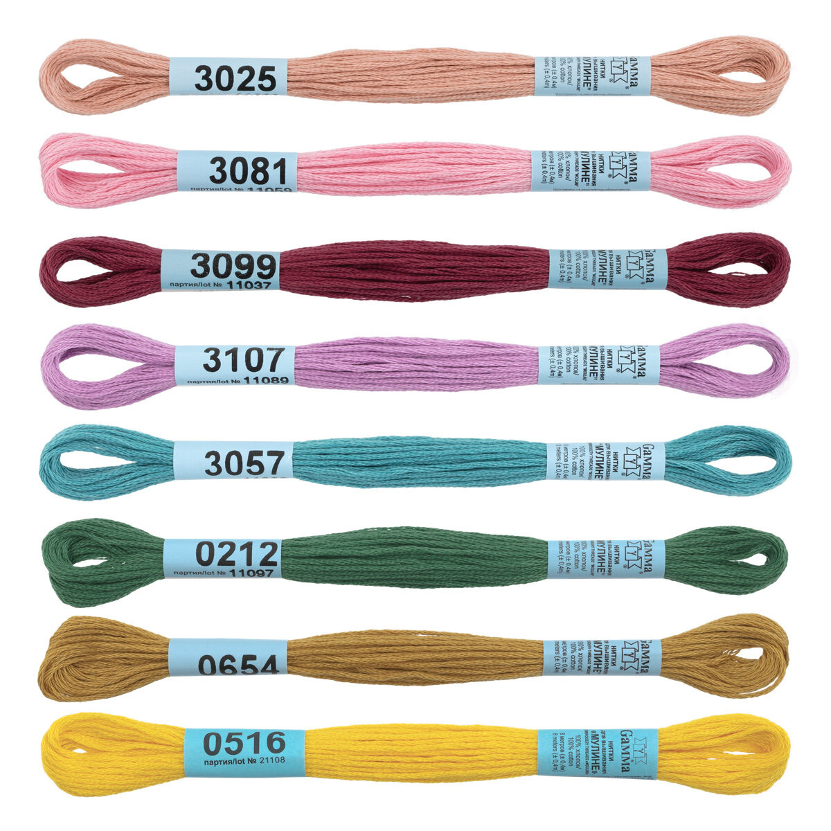 Нитки для вышивания Gamma набор мулине MOULINE 100% хлопок 8 x 8 м pastel
