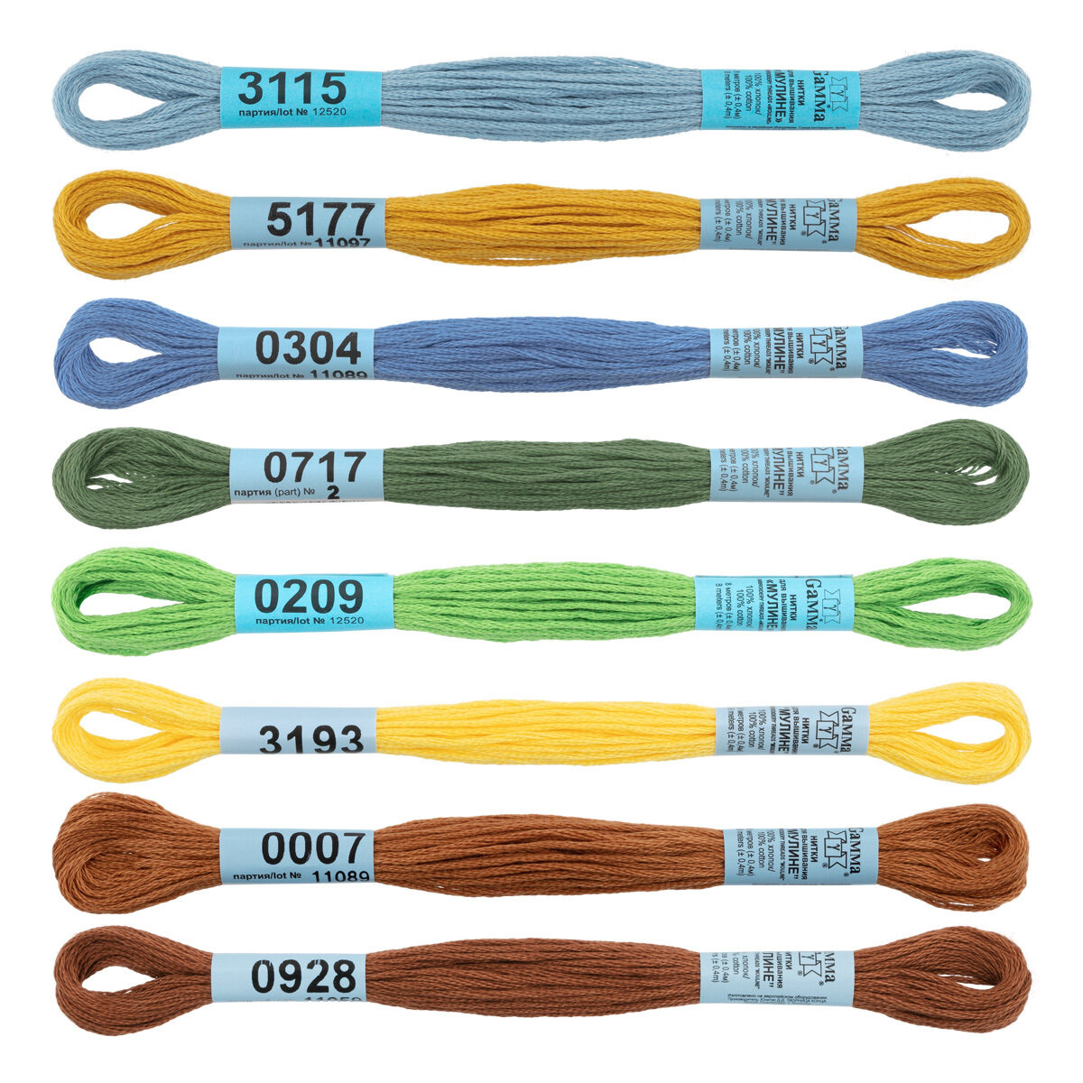 Нитки для вышивания Gamma набор мулине MOULINE 100% хлопок 8 x 8 м base