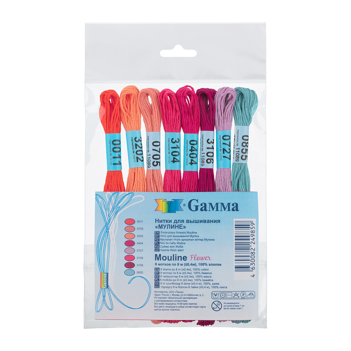 Нитки для вышивания Gamma набор мулине MOULINE 100% хлопок 8x8 м flower