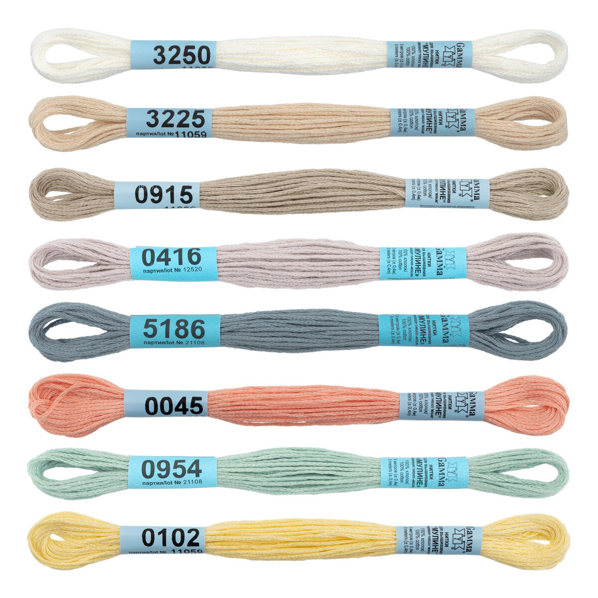 Gamma Набор ниток мулине «Pastel», 8 ± 1 м, 9 шт