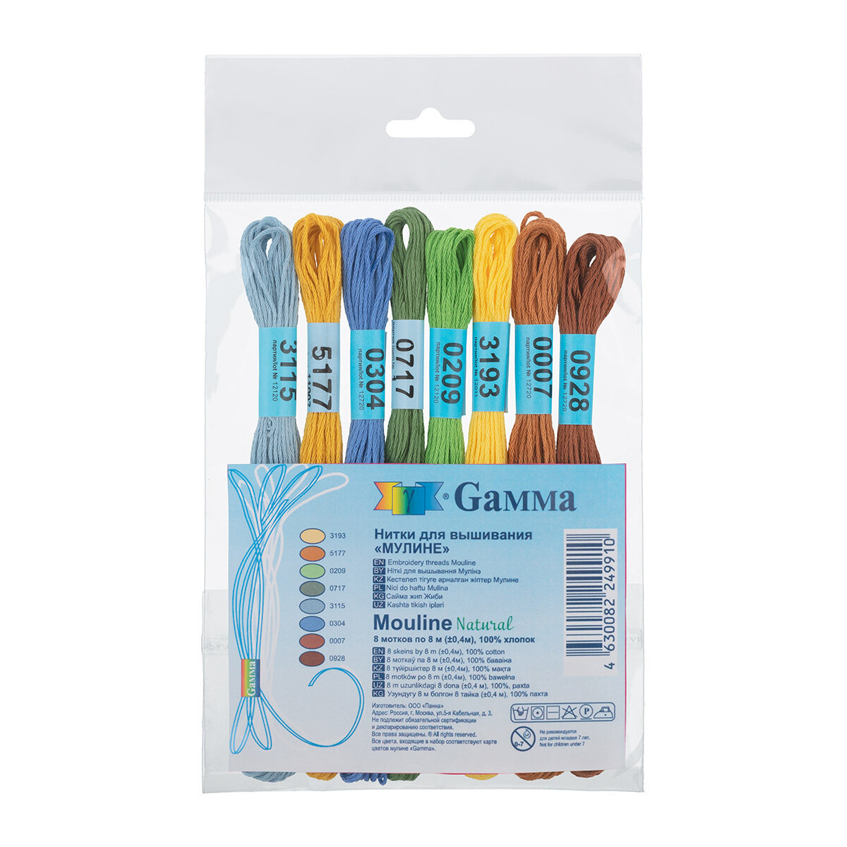 Нитки для вышивания Gamma набор мулине MOULINE 100% хлопок 8 x 8 м base