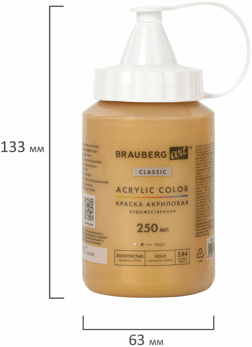 Brauberg Краска акриловая художественная 250 мл, BRAUBERG ART CLASSIC, Золотистая