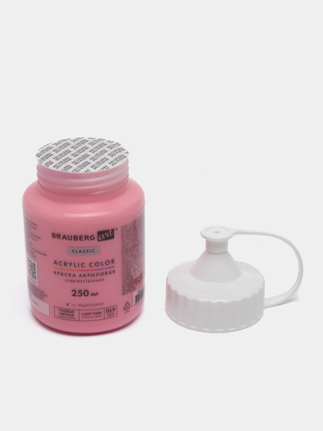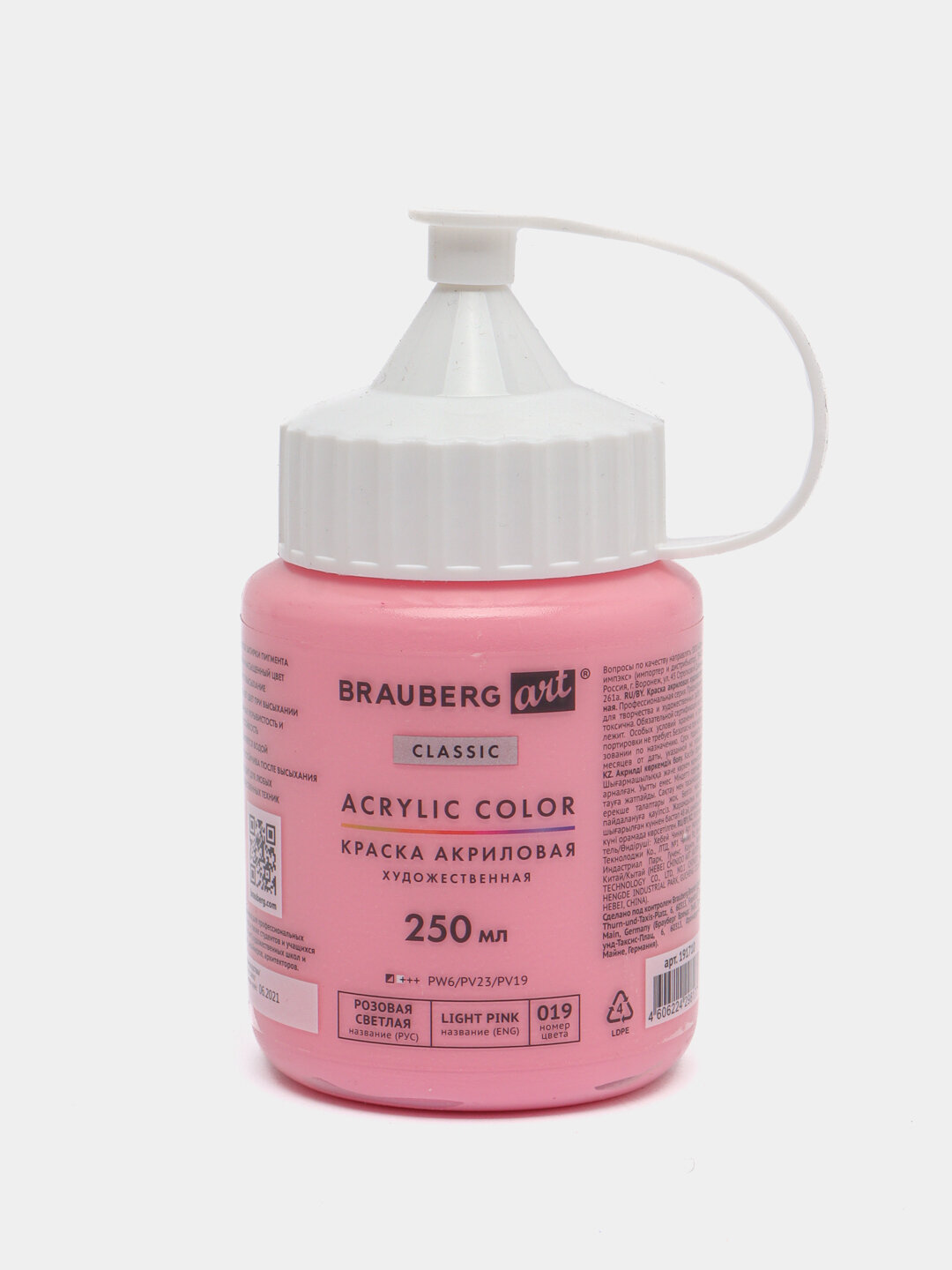 Купить Краска акриловая художественная Brauberg Art Classic, флакон 250 мл, Розовая Светлая, 191710