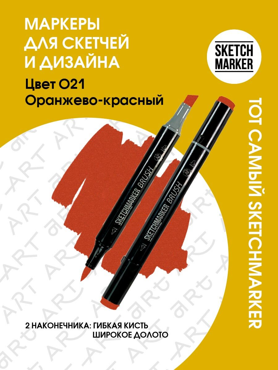 Купить Маркер Sketchmarker Brush двухсторонний на спирт.основе цв.O21 Оранжево-красный