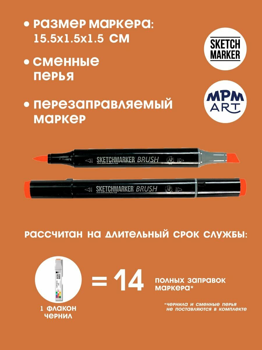 Двусторонний заправляемый маркер SKETCHMARKER Brush Pro на спиртовой основе для скетчинга, цвет: O52 Забавный апельсин