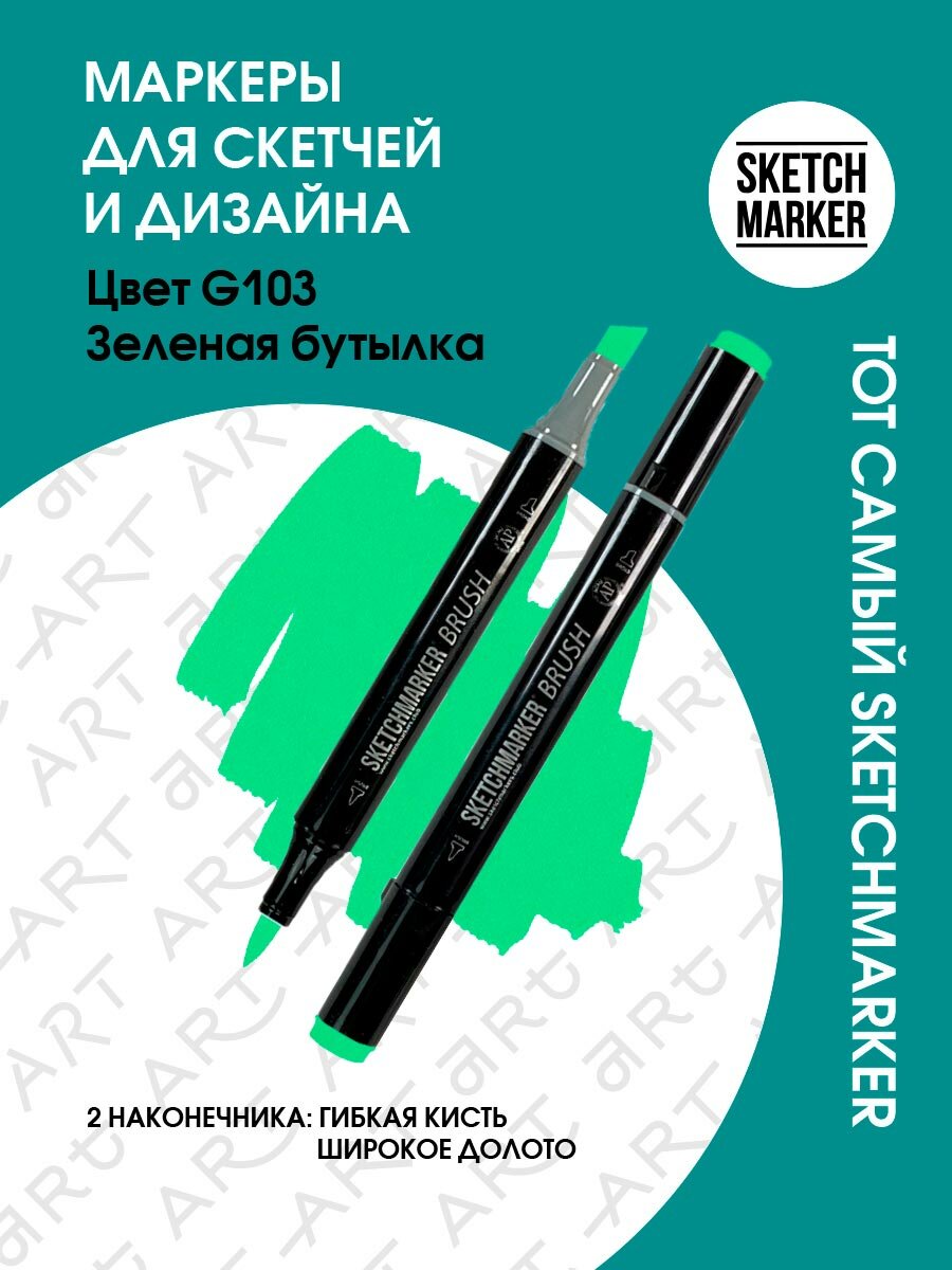 Купить Маркер Sketchmarker Brush двухсторонний на спирт.основе цв.G103 Зеленая бутылка
