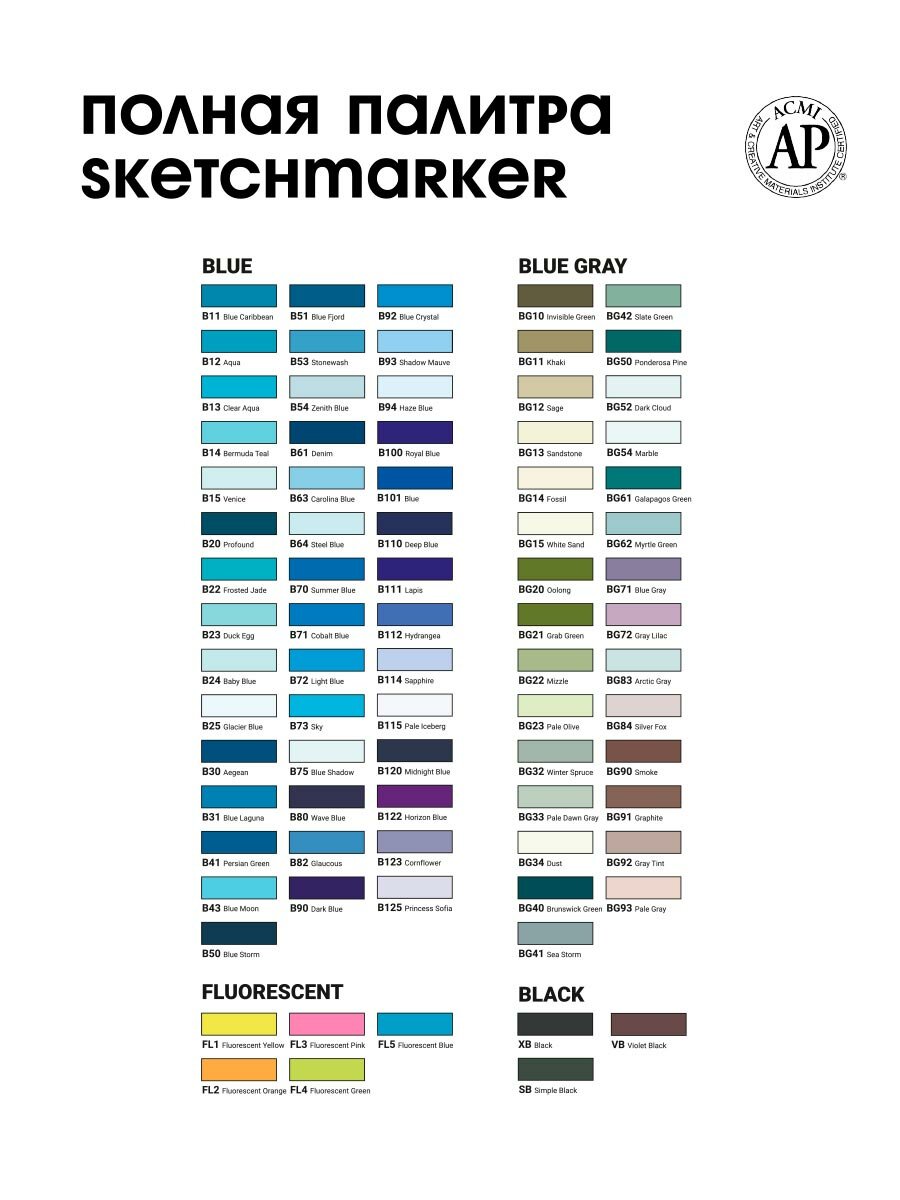 | Плюсы: | По качеству не уступают copic и touch, а цена ниже. Очень большая палитра оттенков |