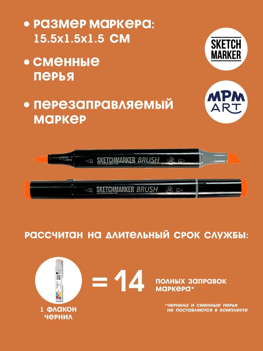 Двусторонний заправляемый маркер SKETCHMARKER Brush Pro на спиртовой основе для скетчинга, цвет: O52 Забавный апельсин