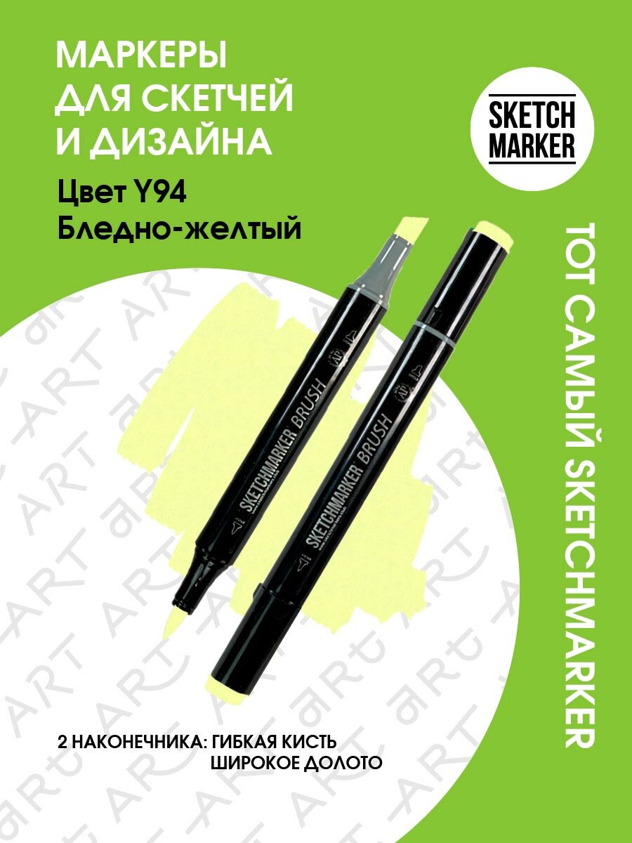 Купить Маркер Sketchmarker Brush двухсторонний на спирт.основе цв.Y94 Бледно Желтый
