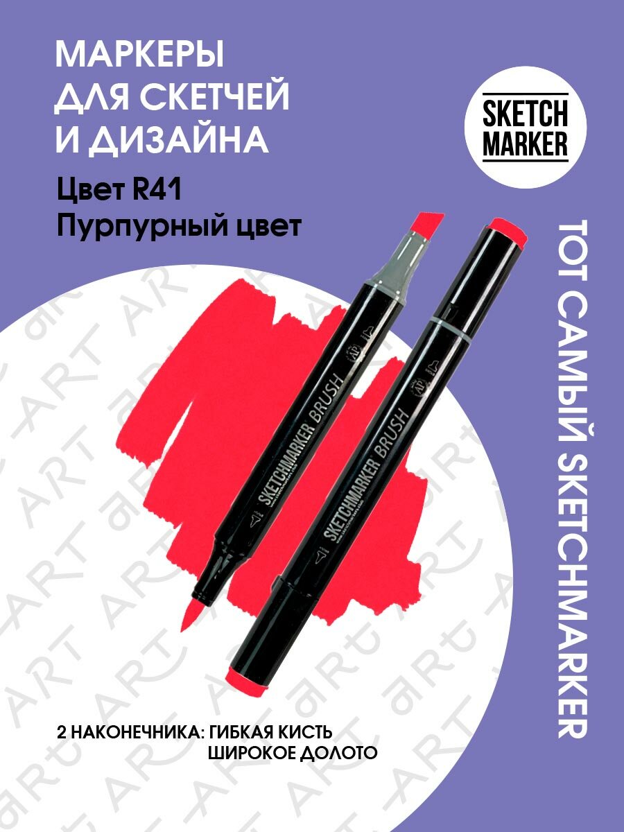 СохранитьМаркер Sketchmarker Brush двухсторонний на спирт.основе цв.R41 Пурпурный цвет интересное: