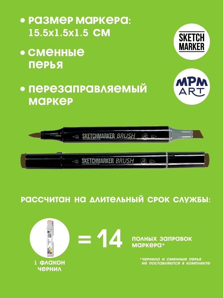 Двусторонний заправляемый маркер SKETCHMARKER Brush Pro на спиртовой основе для скетчинга, цвет: G20 Игуана