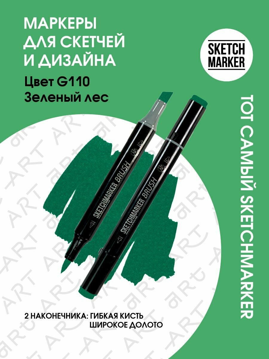 Купить Маркер Sketchmarker Brush двухсторонний на спирт.основе цв.G110 Зеленый лес