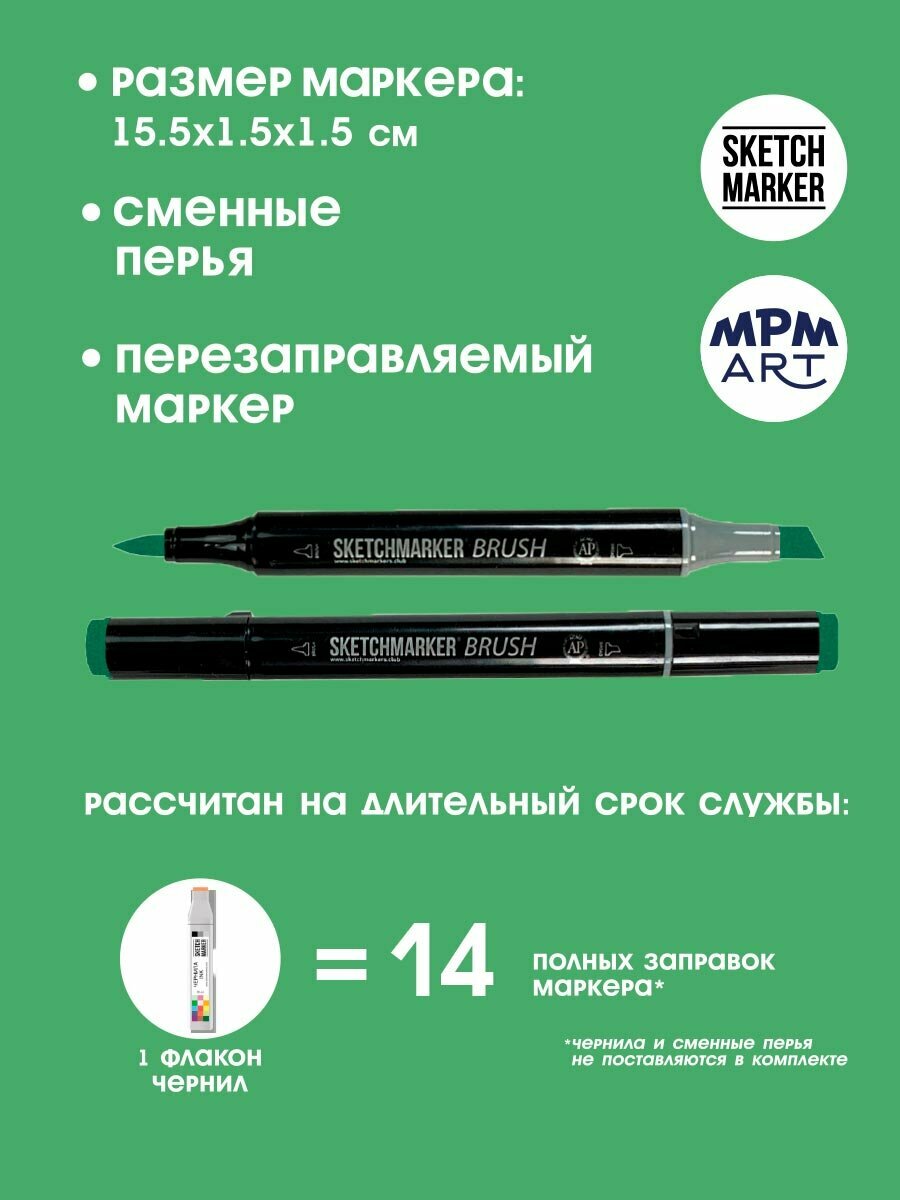 Художественный маркер SKETCHMARKER Маркер спиртовой двухсторонний SKETCHMARKER Brush, G22 Зелёный хром