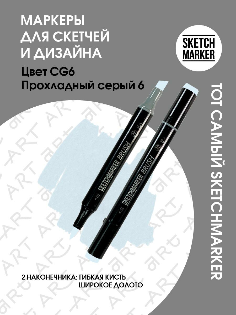 СохранитьМаркер Sketchmarker Brush двухсторонний на спирт.основе цв.CG6 Прохладный серый 6 интересное: