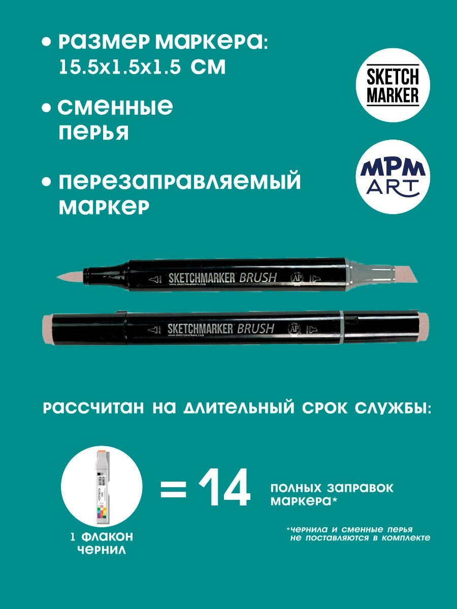 Двусторонний заправляемый маркер SKETCHMARKER Brush Pro на спиртовой основе для скетчинга, цвет: V133 Раковина