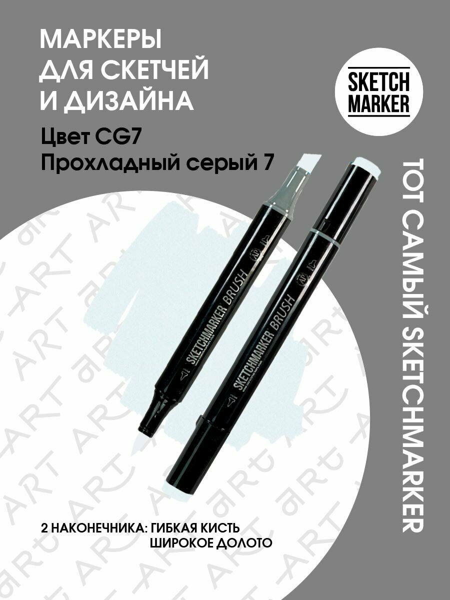 СохранитьМаркер Sketchmarker Brush двухсторонний на спирт.основе цв.CG7 Прохладный серый 7 интересное: