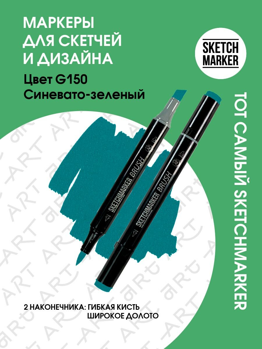 Купить Маркер Sketchmarker Brush двухсторонний на спирт.основе цв.G150 Синевато-зеленый