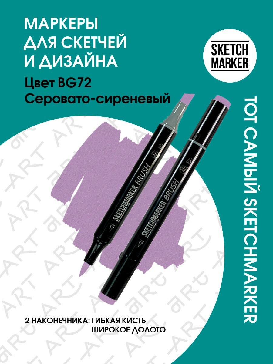 Купить Маркер Sketchmarker Brush двухсторонний на спирт.основе цв.BG72 Серовато сиреневый