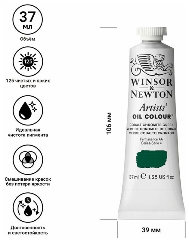 Краска масляная профессиональная Winsor&Newton Artists Oil, 37мл, кобальт зеленый хром ( Артикул 316802 )