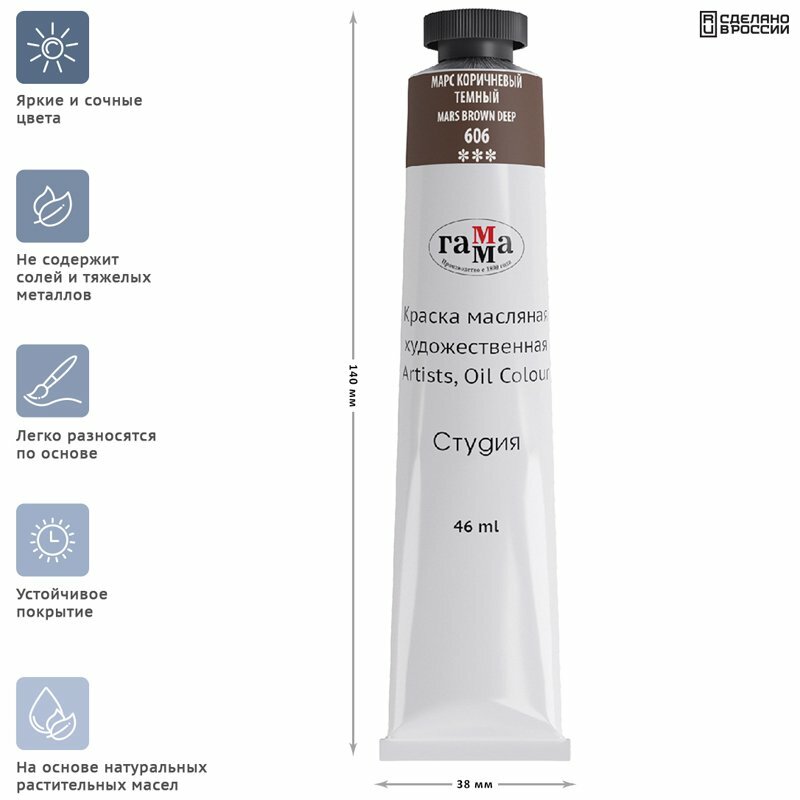 СохранитьКраска масляная художественная Гамма "Студия", 46мл, туба, марс коричневый темный интересное: