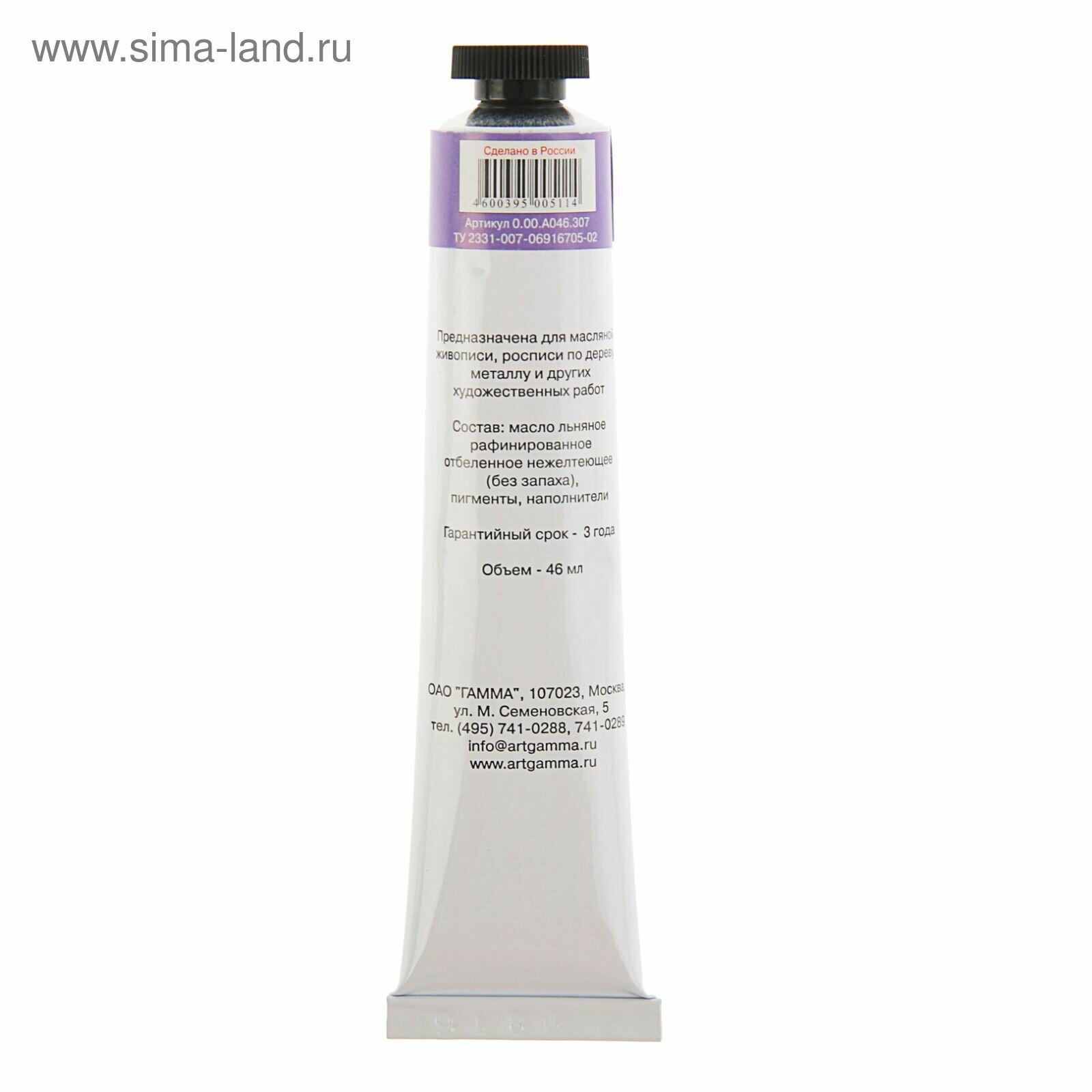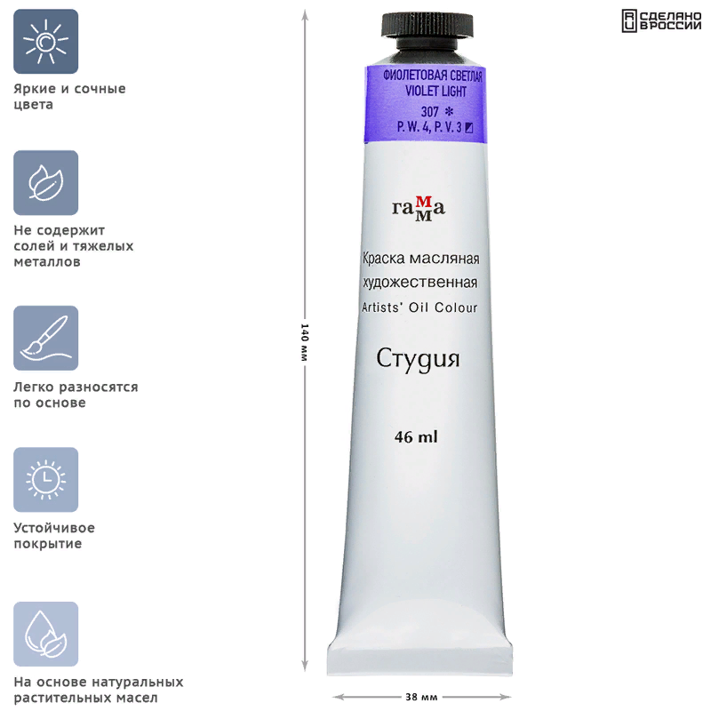 Краска масляная Гамма - Студия, №307 фиолетовая светлая, 46 мл, в тубе, 1 шт
