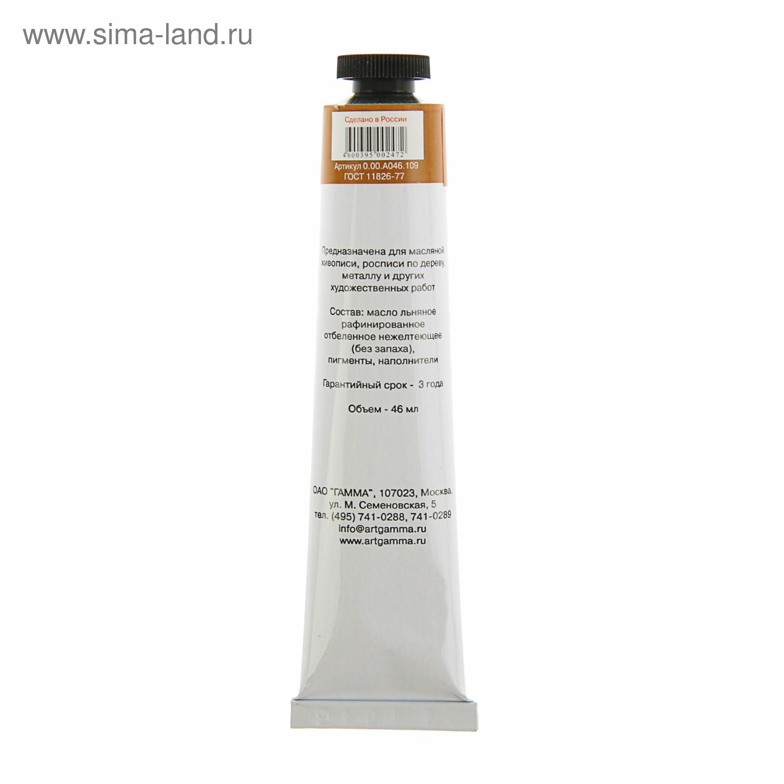 Краска масляная художественная Гамма "Студия", туба 46мл, марс коричневый светлый (0.00.А046.605)
