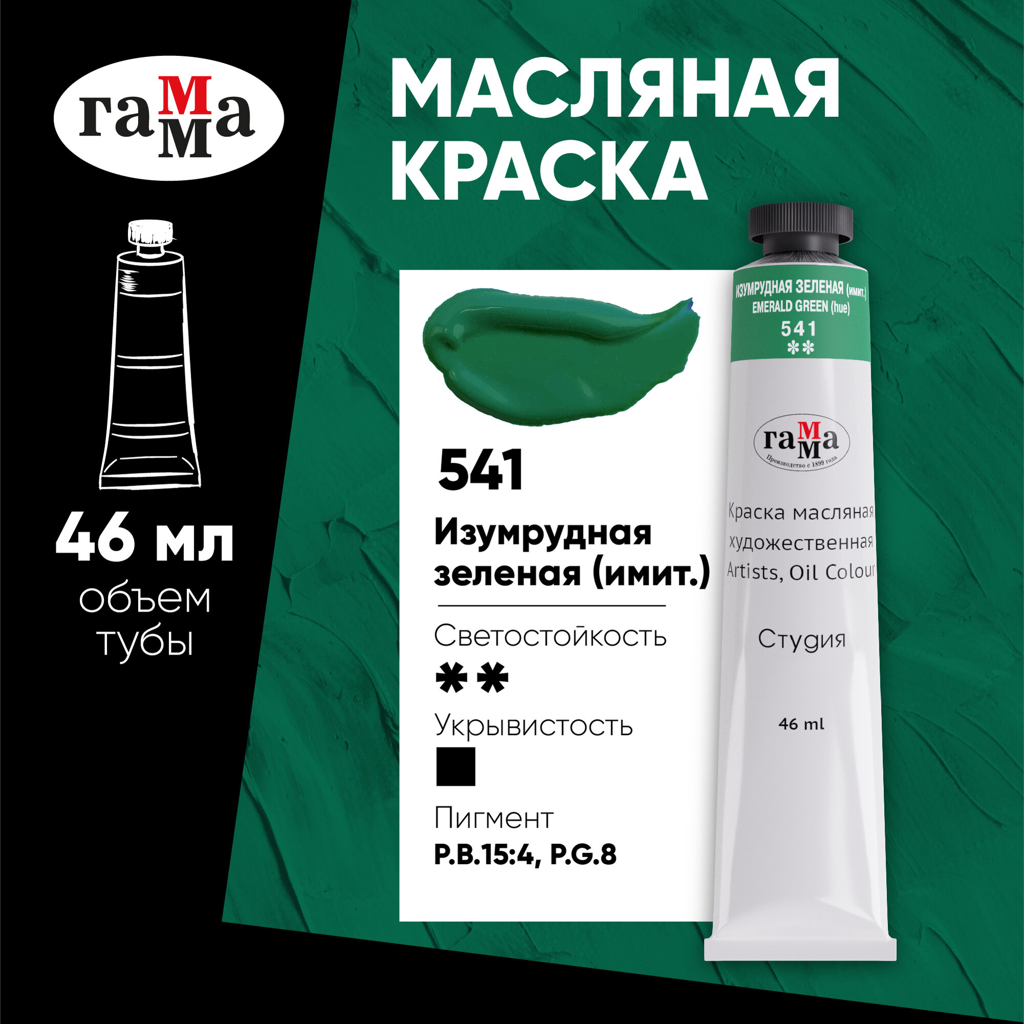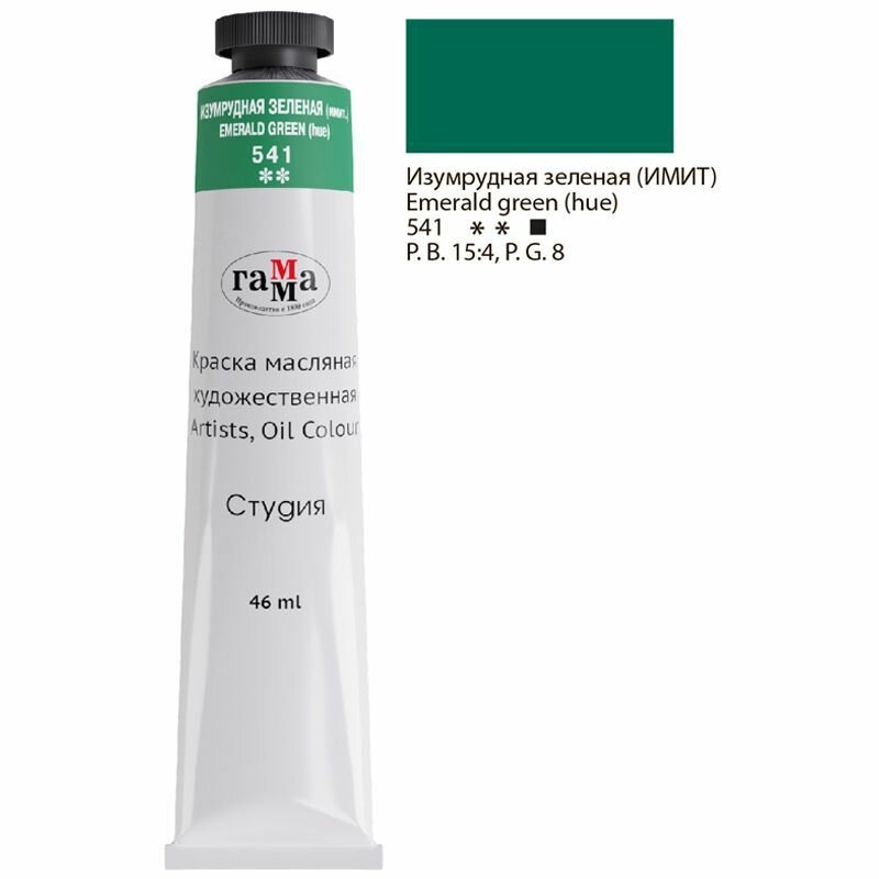 Гамма Краска масляная художественная "Студия", 46мл, туба, изумрудная зеленая (имит.)