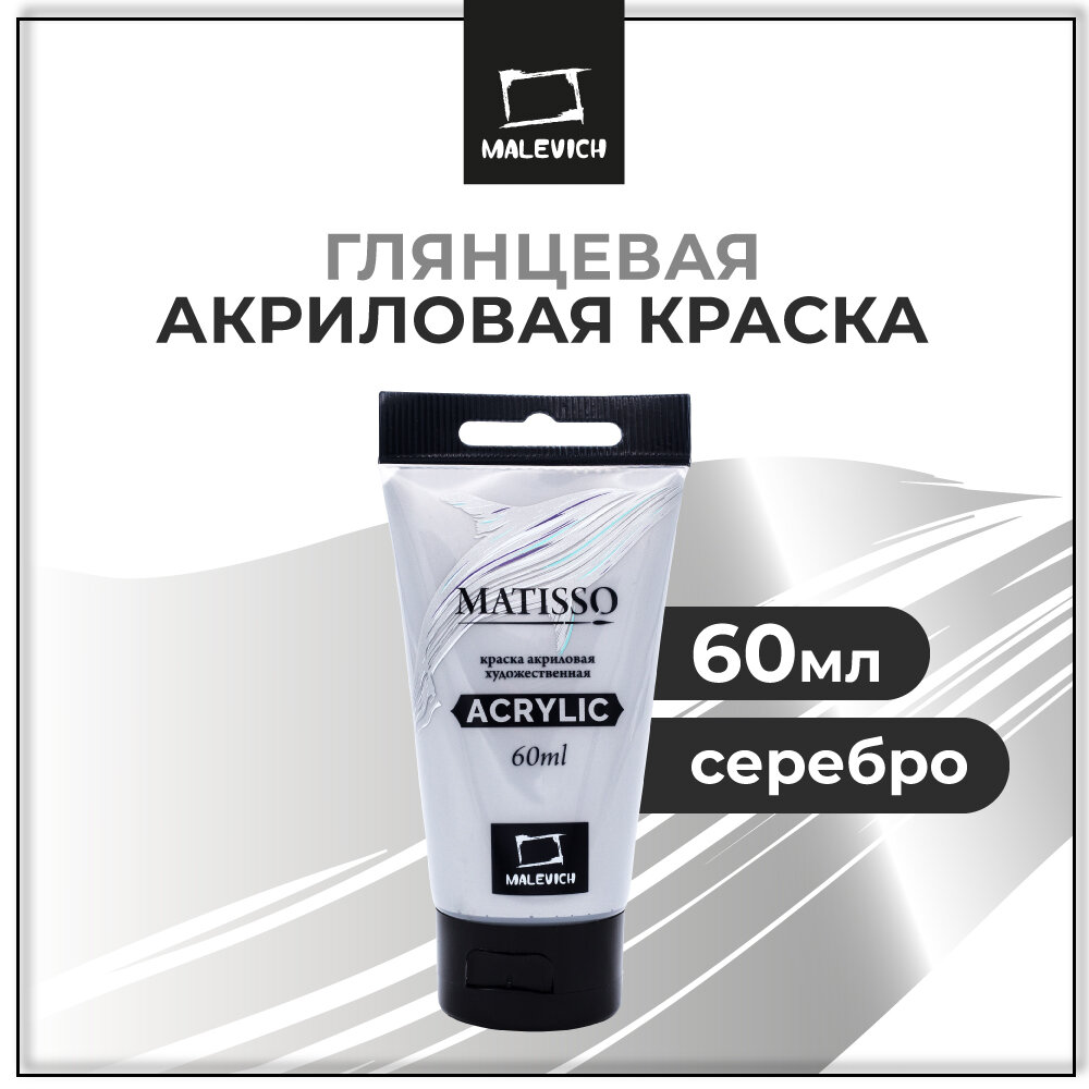 Купить Акриловая краска Малевичъ Matisso, серебро, 60 мл