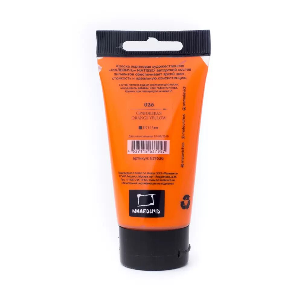 Купить Акриловая краска Малевичъ Matisso, оранжевый, 60 мл