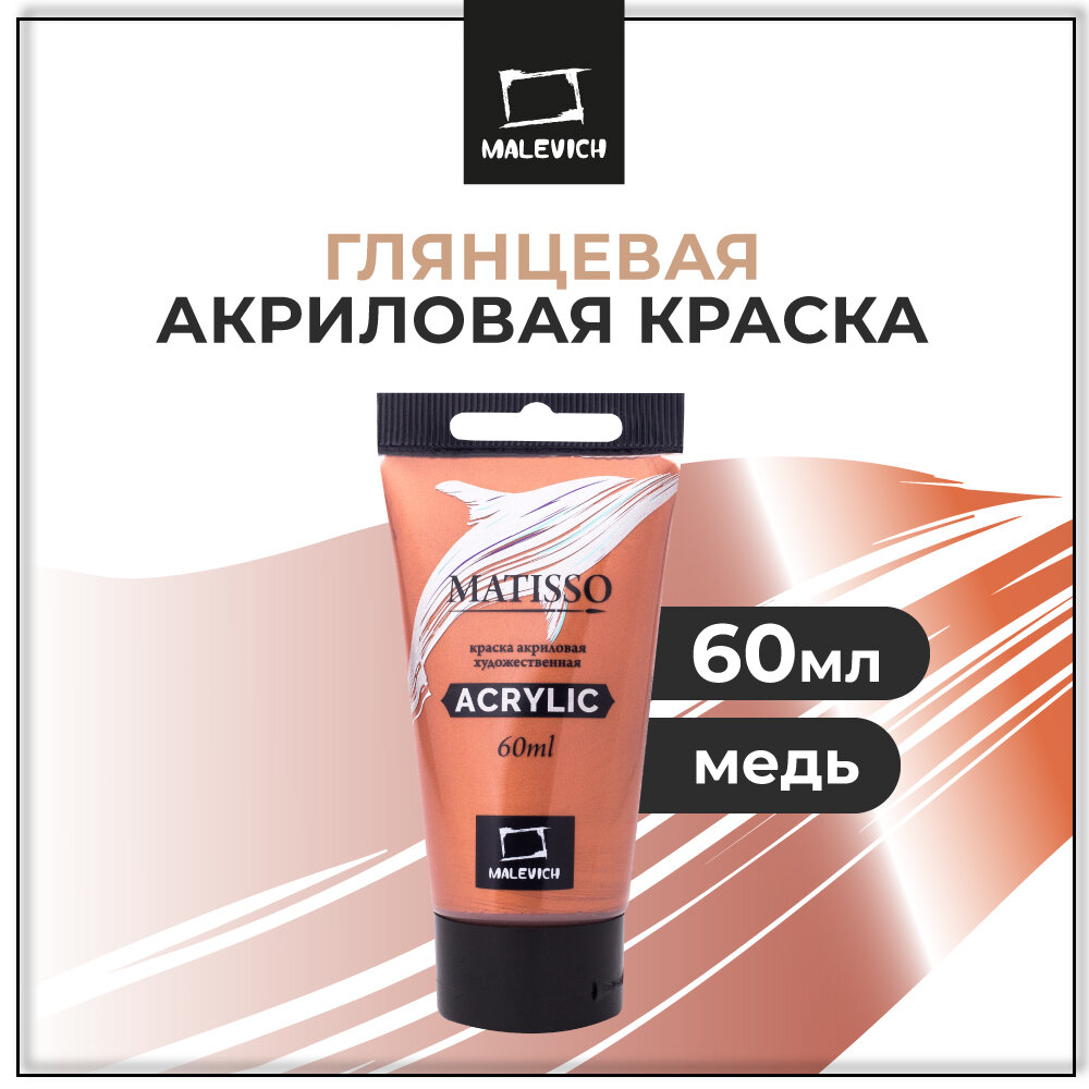 Краска акриловая художественная 1 цвет, 60мл, цвет медь, туба ПВХ Matisso Малевичъ 617230 - 1 шт.
