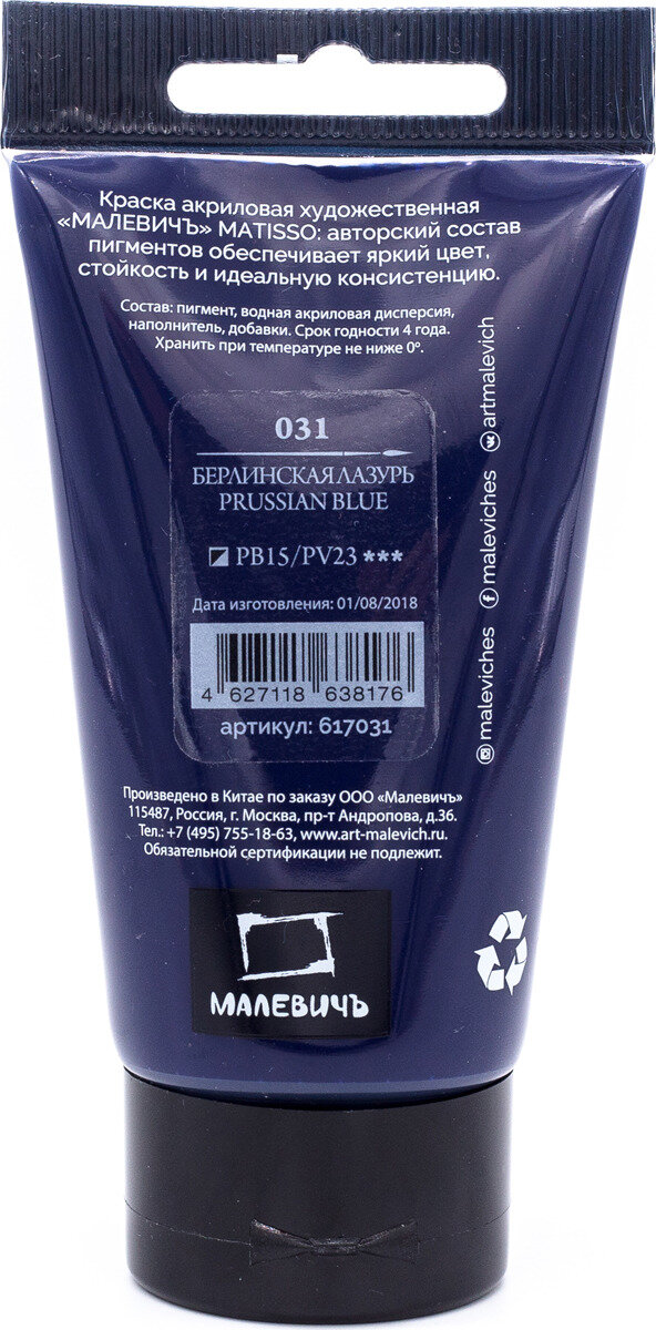 Краска акриловая Matisso 60 мл 617031 берлинская лазурь, 1 шт. в заказе