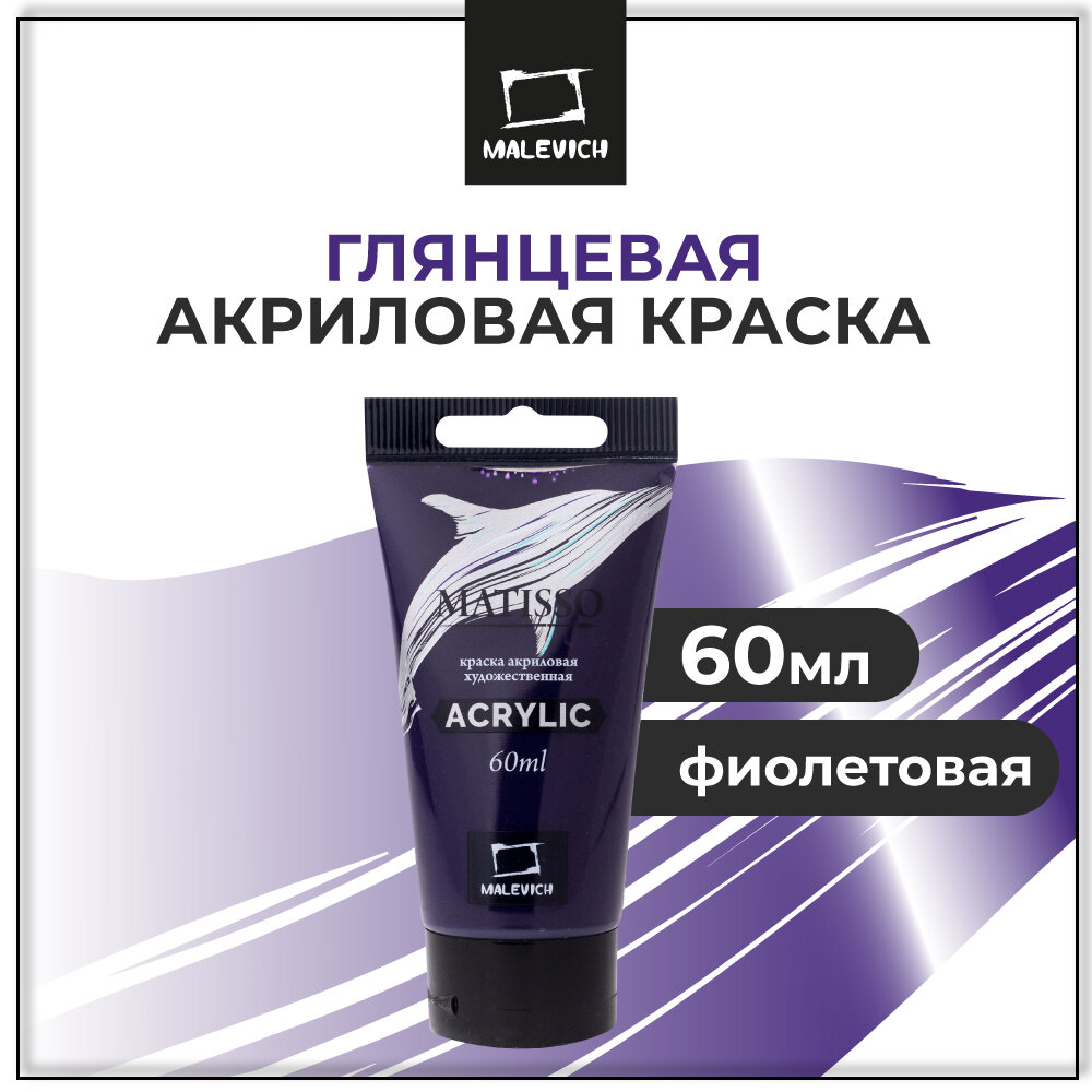 Краска акриловая художественная 1 цвет, 60мл, цвет фиолетовый, туба ПВХ Matisso Малевичъ 617091 - 1 шт.