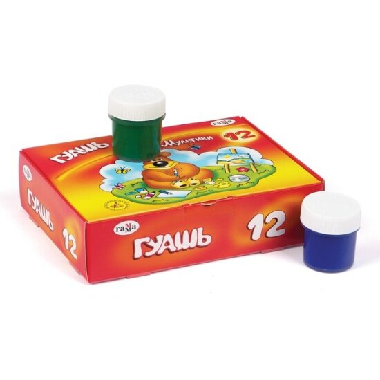 Гуашь Гамма "Мультики", 12 цветов, 20мл, картон. упак.
