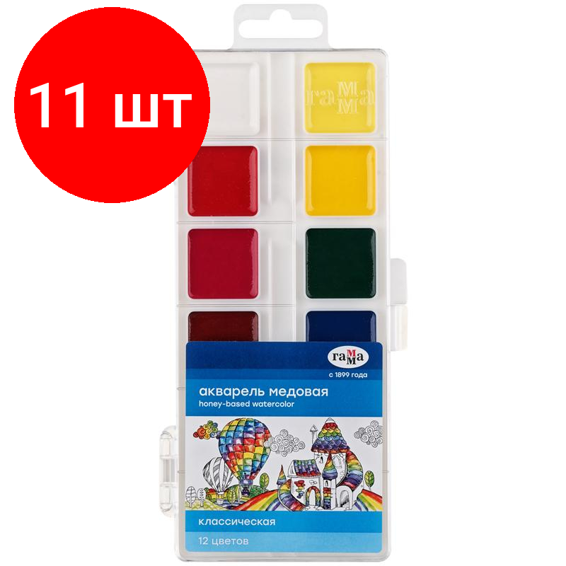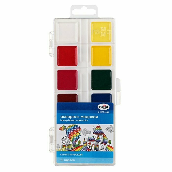 Купить Краски акварельные гамма "Классическая", 12 цветов, медовая, пластиковый корпус, европодвес, 1009194