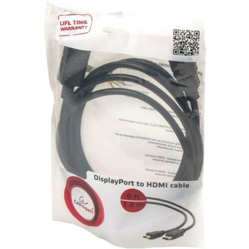 Аксессуар Gembird Cablexpert DisplayPort to HDMI 20M/19M 1.8m Black CC-DP-HDMI-6, кабель с разъемами DisplayPort и HDMI, черного цвета