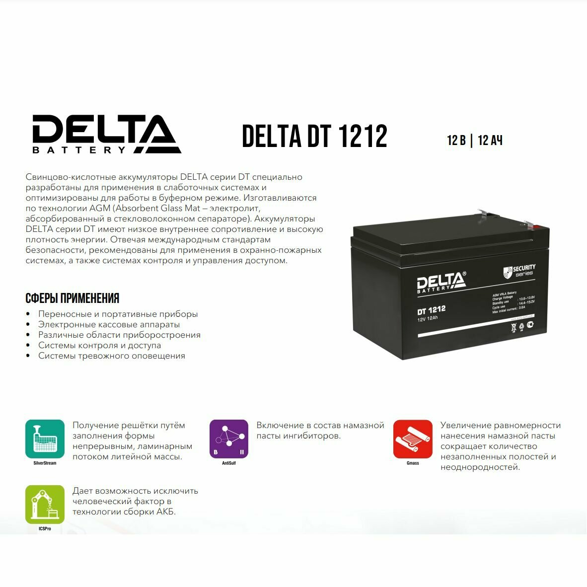 Аккумулятор ОПС 12В 12А.ч DT 1212, DELTA DT1212 (1 шт.)