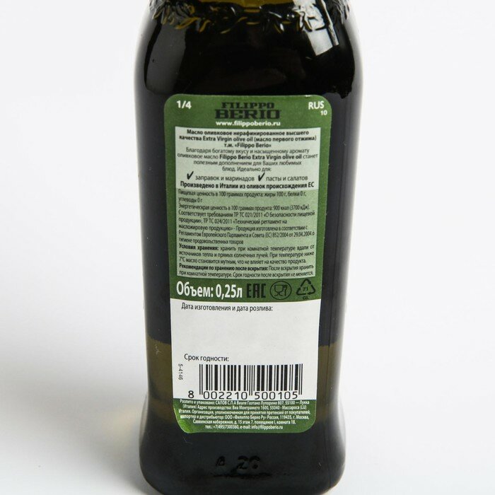 Ниже Вы можете прочитать отзывы на Филиппо Берио Extra Virgin масло оливковое стекло 0,25 л,, ознакомится с подробными характеристиками, посмотреть интересные обзоры и фотографии на Филиппо Берио Extra Virgin масло оливковое стекло 0,25 л,.